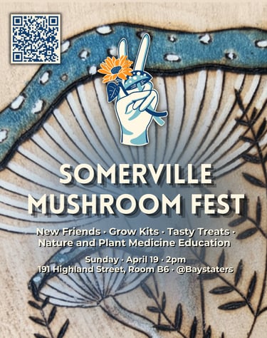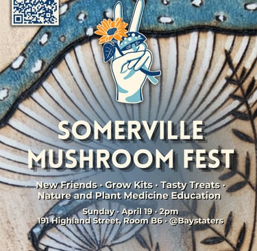 On Sunday, 4/19 at 2pm, celebrate the 5th anniversary of mushrooms being decriminalized in Somerville with new friends, tasty snacks, grow kits, and nature education